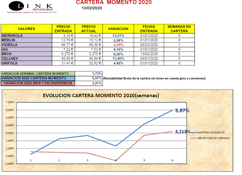 CARTERA MOMENTO 13-02-2020 +1,73% en la semana +5,97% en 2020