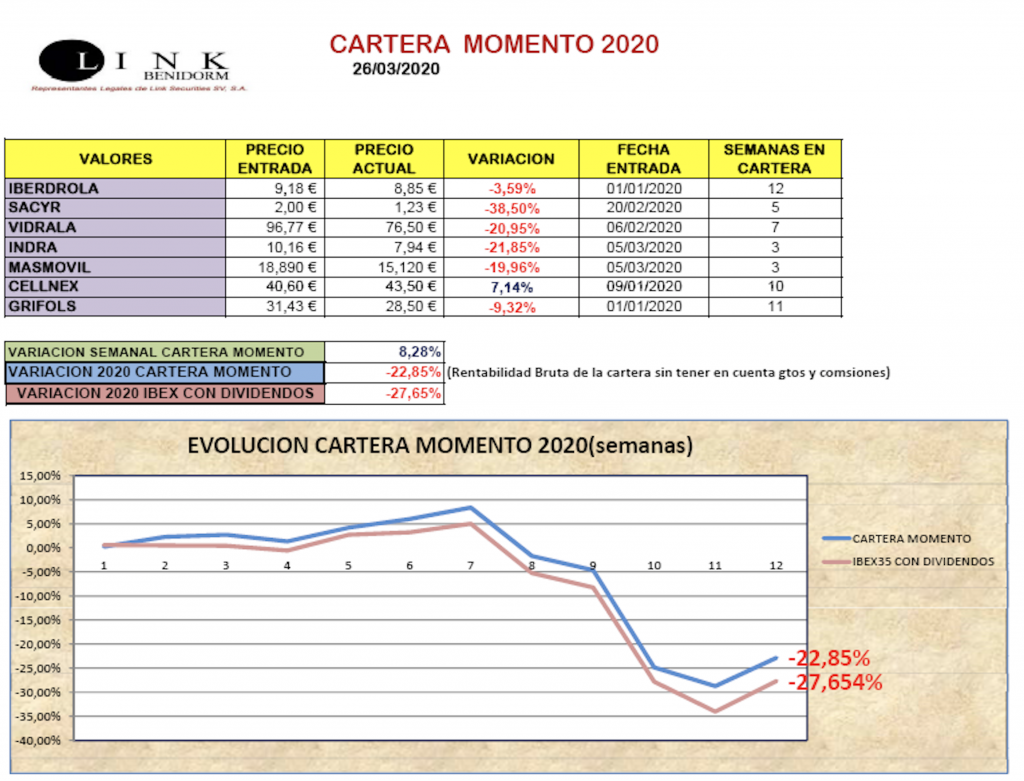 Cartera Momento 26-03-2020 +8,28% en la semana -22,85% en 2020