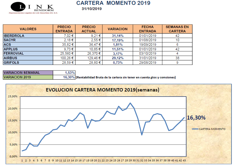 Cartera Momento 31-10-2019 +1,53% en la semana +16,30% en 2019
