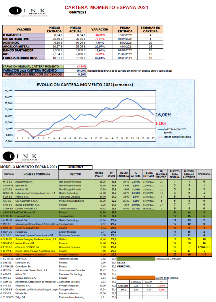 Cartera Momento España 08-07-2021 -3,44% en la semana, +16% en 2021
